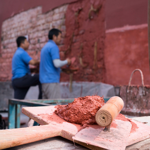 故宫博物院修缮技艺部的宫墙抹灰试验区,学员们正在练习。