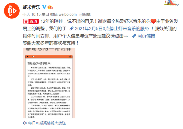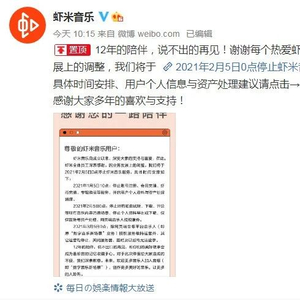 “虾米音乐将关停”的消息