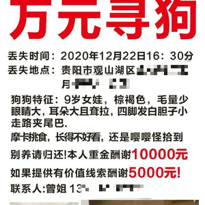 狗狗走失,主人万元寻狗未果