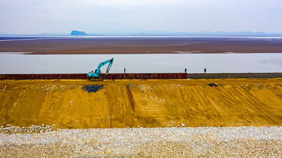 2020年12月18日,江西省九江市湖口县正在加固整治鄱阳湖区单退圩堤南北港圩。视觉中国供图
