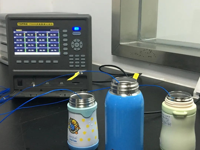 1月5日,在广西质检院的实验室,宋明将一壶开水分别倒入被测试的保温杯中,连接上仪器进行保温效能测试。“根据相关标准,需要测试6个小时和12个小时。”宋明说,保温性能是保温杯的重要功能之一,保温性能的好坏与生产工艺、真空层的抽空技术和密闭性密切相关,与容器的容量、有无内塞、口径、杯盖密封结果也有一定关系。