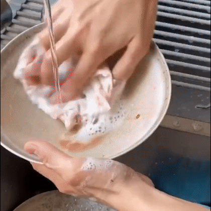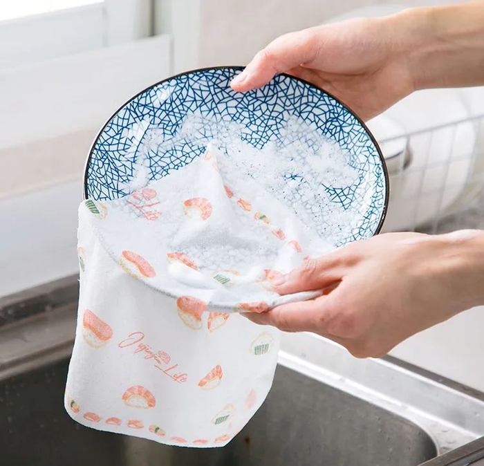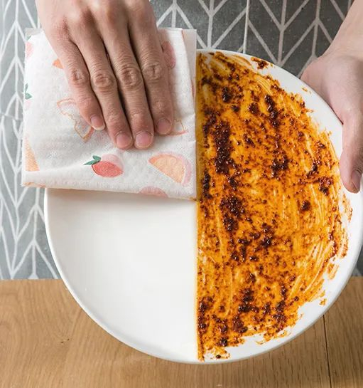 25cm*25cm大尺寸,一张能包裹住整个盘子,擦洗碗筷起来轻松自在,一扫而过,干干净净。