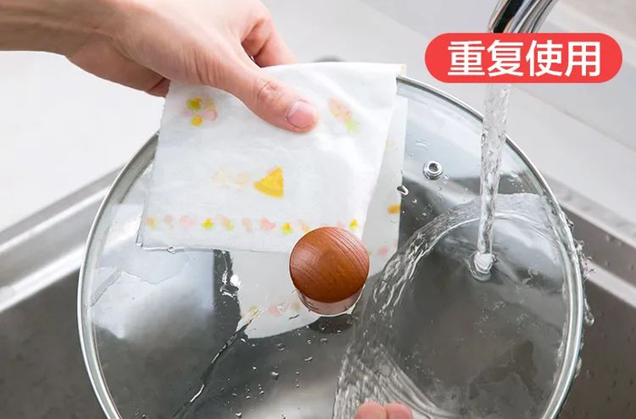 可水洗反复使用,与传统厨房用纸不一样!自带洗洁精(仅初次清洗有效),省时省力。