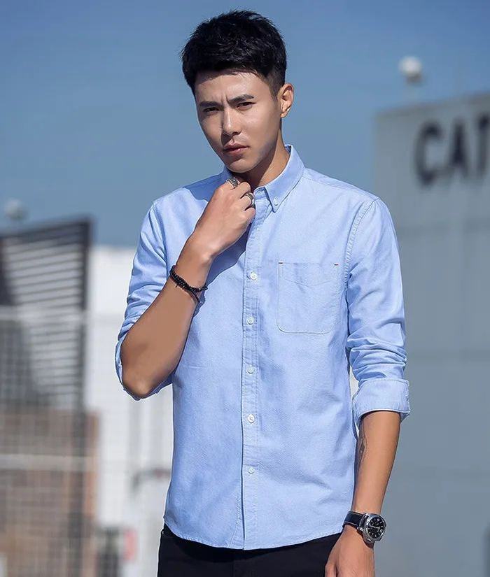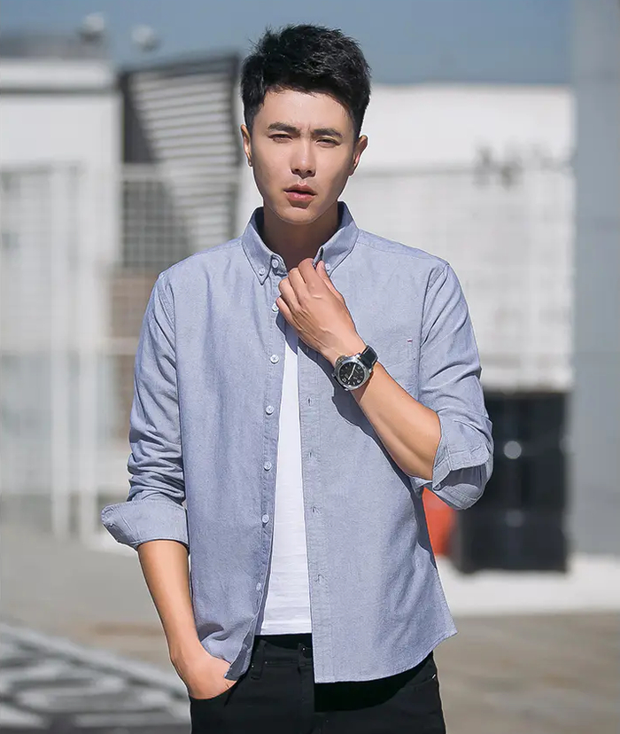 单穿一件牛津纺款,套上一件大衣就能在通勤的路上潇洒行走。