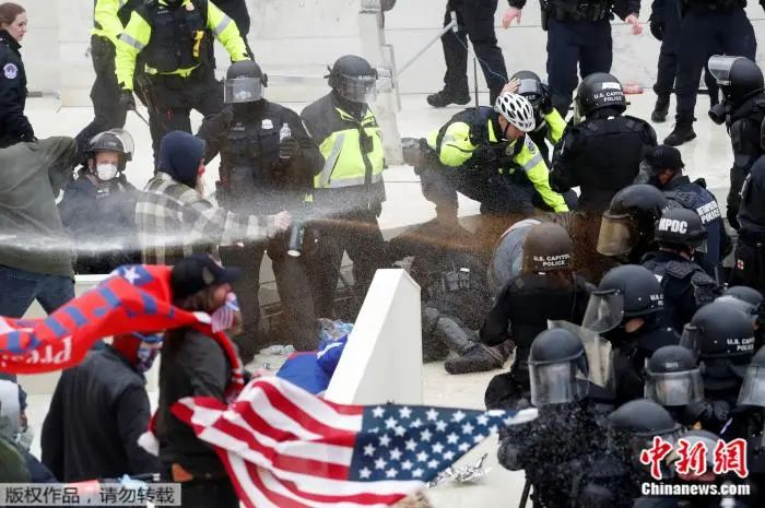 当地时间1月6日,美国华盛顿,支持特朗普的抗议者与警察发生冲突。