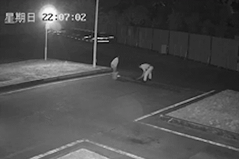 考场工作人员通过调取公共视频,发现2020年12月27日21点50分左右,有两个人提着水桶、扫把出现在考场。