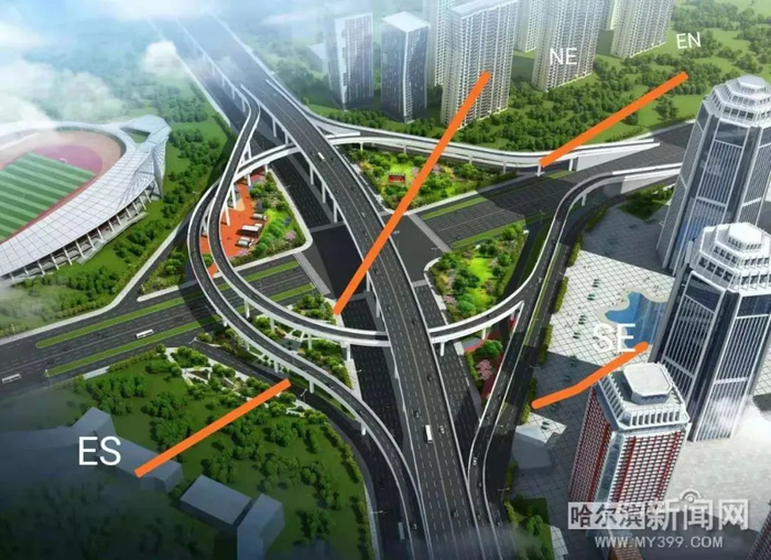 ES匝道由长江路东侧通往南直路南侧进入香坊区
