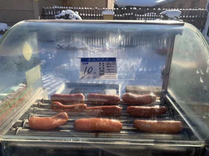 赵悦看到每个摊位前都立着牌子,上面标注着商品价格。其中,“传说中的最贵烤肠”,她看到是售价每根10元。