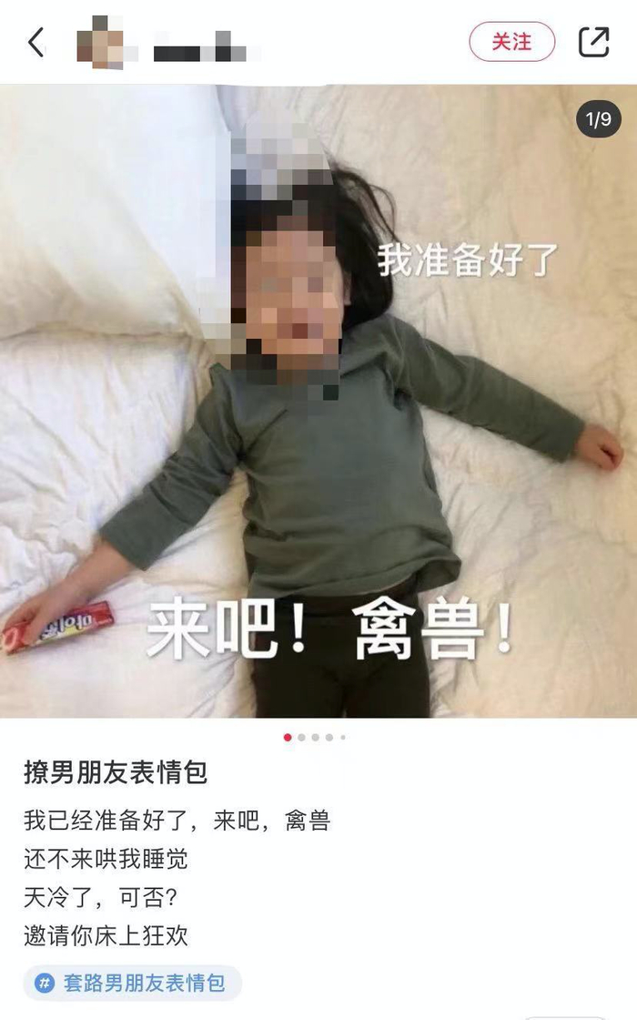 “在两性关系里把自己弱智化、把情欲理解为‘可爱’。”这条评论被网友认为是“导致儿童软色情表情包泛滥的最大原因”。