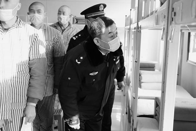 2.李向阳(右一)在检查戒毒人员生活卫生情况。