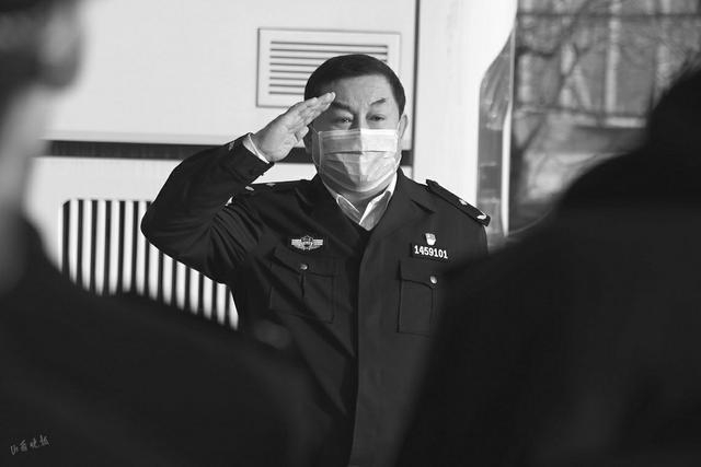 3.李向阳含泪向春节期间进入戒治一线封闭隔离工作的民警职工敬礼。