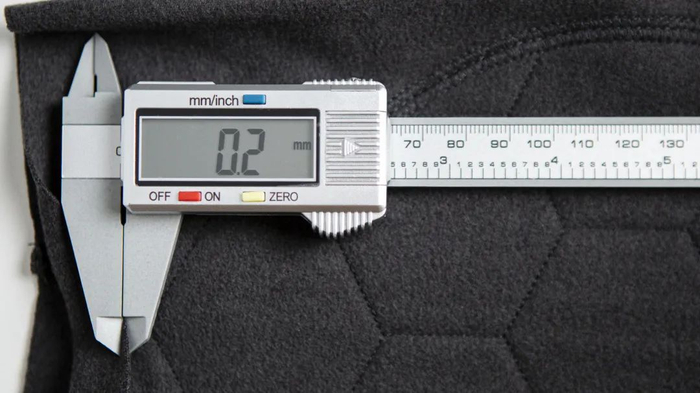 但是有多薄呢?我们测了下,周边部分大概是0.2mm这么厚(中间区域为2mm左右),比妹子丝袜还轻薄。