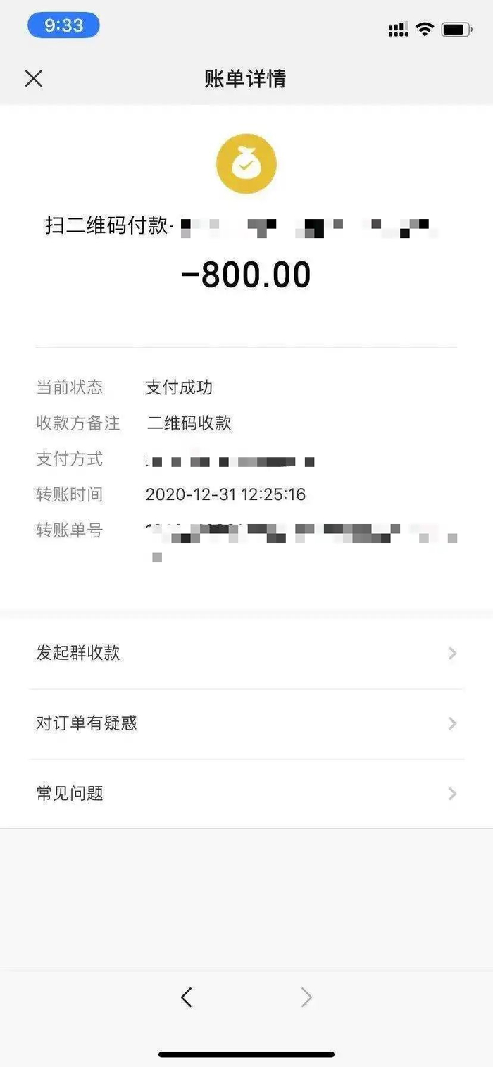 一番争论后,刘先生还是通过微信支付了800元,拿回了遗失的物品。