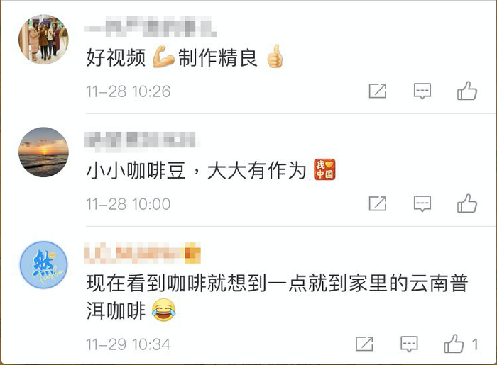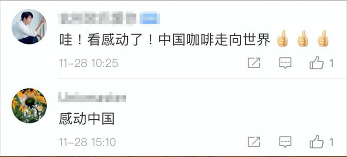 “小小咖啡豆、大大有作为!”“看感动了,中国咖啡走向世界”……国内网友的语气中透着自豪。有网友评价,这是其“迄今为止看到的最具诗意且最接地气的中国故事”,为视频“点一百个赞”。“扶贫就应该这样干,故事就应该这样讲”。
