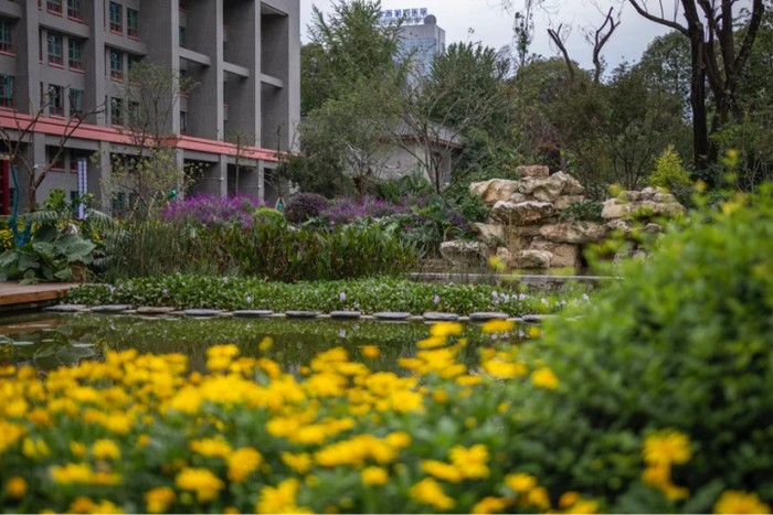华西荷花池、药用植物园,望江弘毅路、张澜路、北苑广场,江安东门等三校区多片区约9万平方米工程项目已完成道路改造和绿化景观提升,极大改善了学校校园环境。