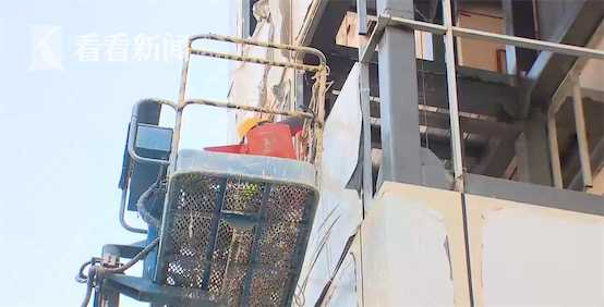 今天上午,看看新闻Knews记者在鹤明小区21号楼看到,现场吊装和焊接加固工作已经完成,还未覆盖白色铝板的正是 两块"积木"的连接处,施工人员正在加紧施工。