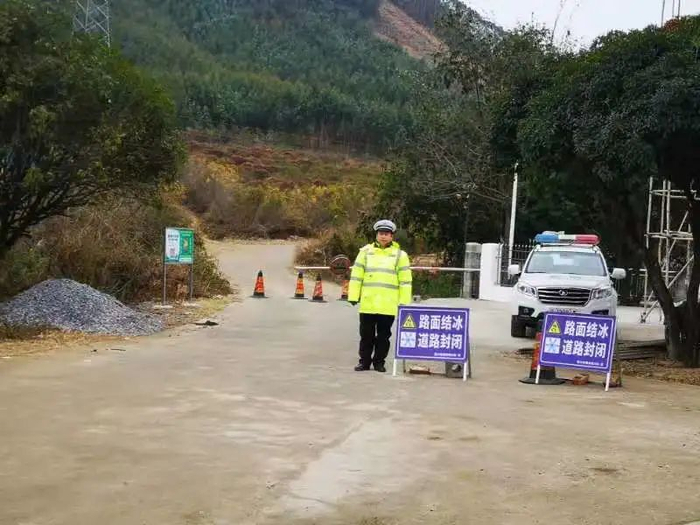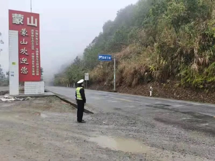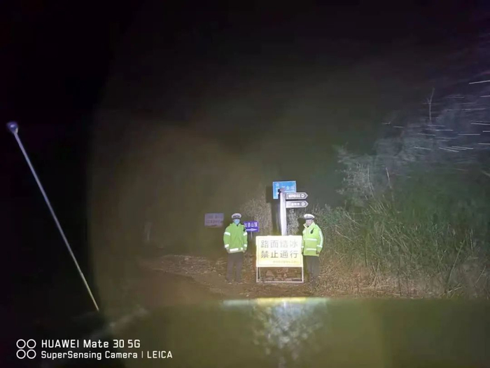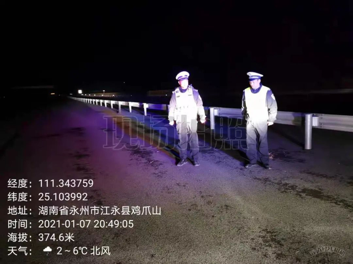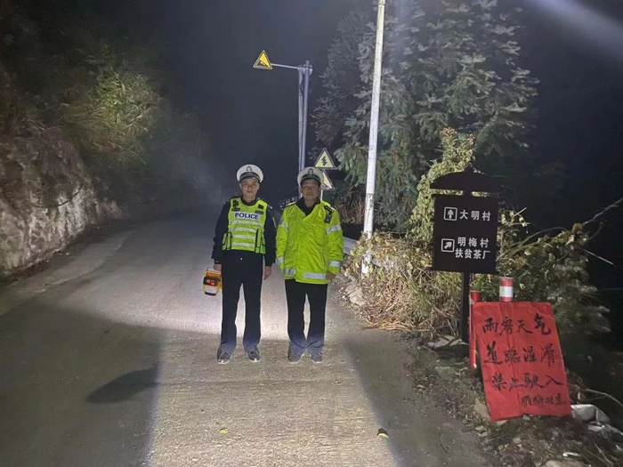 ▲贺州市公安局交警支队交警三大队民警冒着严寒夜间也不放松,时刻坚守景区隐患路段。