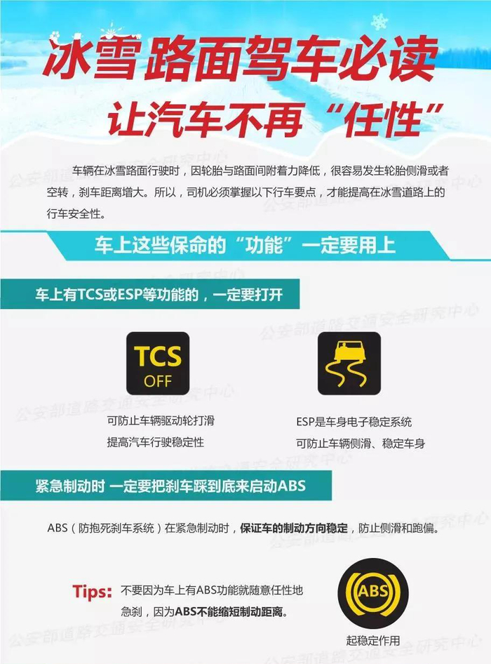 1、车辆在冰雪路面上制动时,制动距离会大大延长,因此在降低车速的同时,也要加大与前车的安全距离给自己预留足够的反应时间;