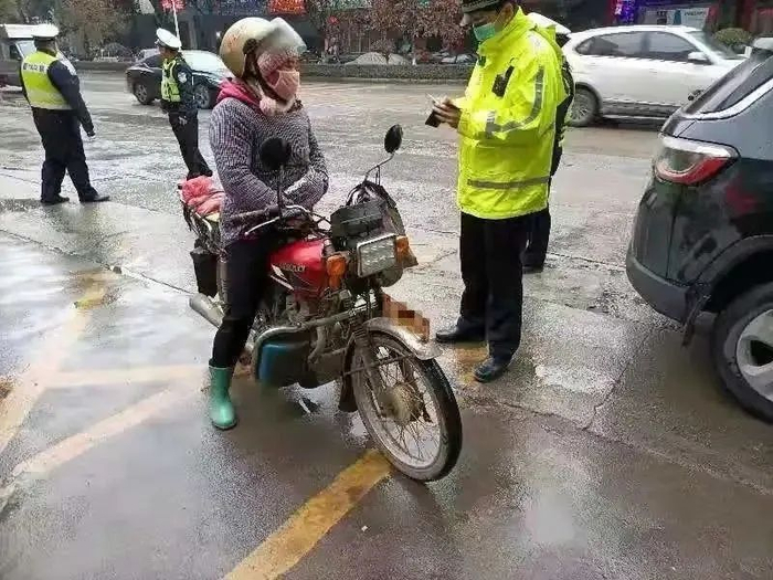 ▲贺州市公安局交警支队交警二大队民警冒着严寒开展路检路查,当日,大队共查处各类交通违法行为49起,其中摩托车无证6起、不戴头盔11起,货车超载30%以下2起、不按规定车道行驶16起,电动车不按规定车道行驶6起,其它违法行为8起,扣摩托车8辆。