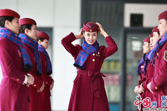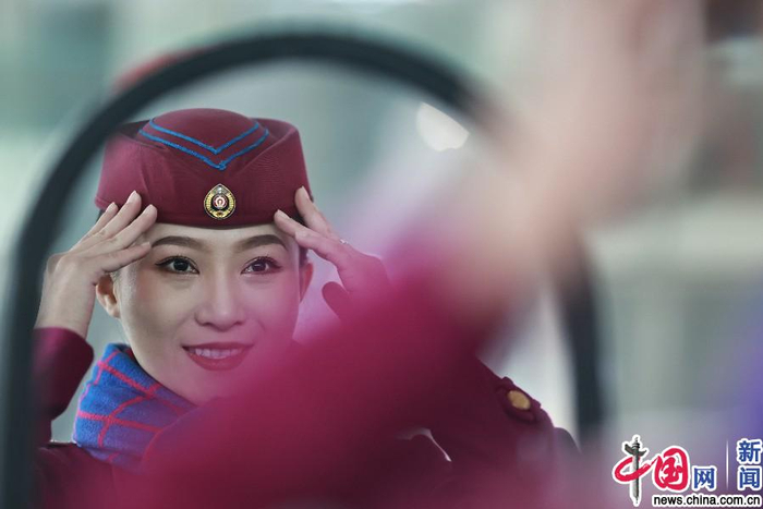1月7日,乘务人员对镜整理仪容仪表。中国网发 苏志刚/摄