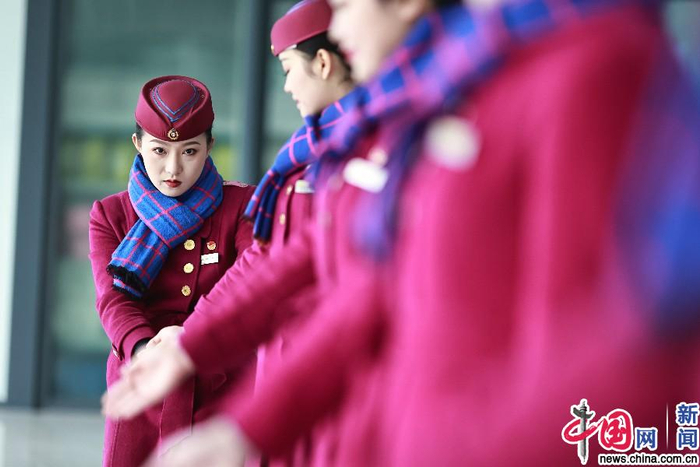 1月7日,乘务人员在进行礼仪培训。中国网发 苏志刚/摄