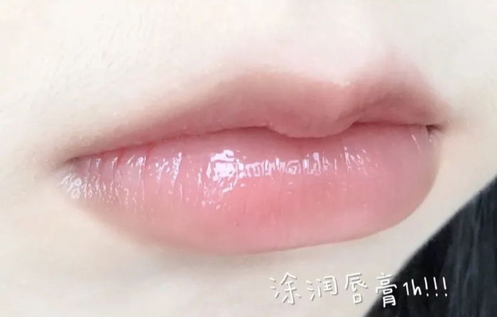 润唇膏涂上去的效果,嘴巴像刚敷过唇膜似的,润到感觉要出水。