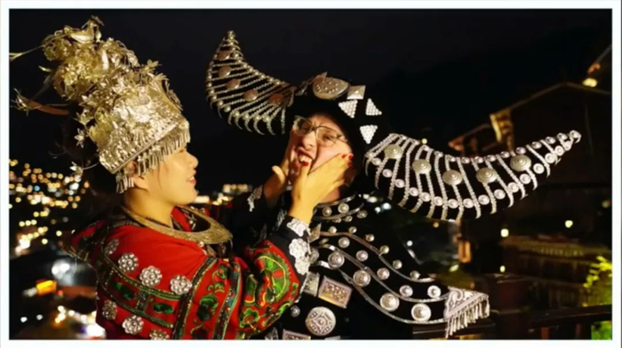 ▲阿福和妻子在贵州千户苗寨体验当地民族风情(视频截图)