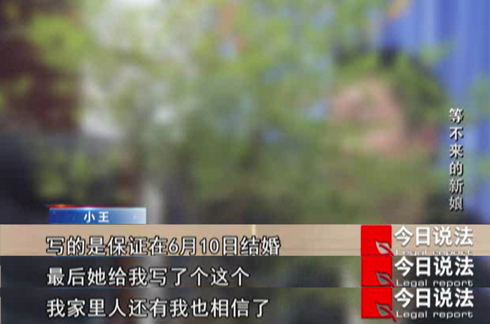 余娜娜的保证书让王家人心里有了底,而小王也内心忐忑地等待着6月10日——对方承诺结婚的日子。但这天还是出了事,一大早,余娜娜就打电话给小王称自己出了车祸,无法到丹江口与他登记结婚。6月10日之后,余娜娜又联系小王,说自己需要钱和老公打官司离婚,骑虎难下的小王又给她转了1万元。此时,小王已经掏空了自己的积蓄,还在网上贷了款,拿到钱后的余娜娜也失去了联系。2020年7月,小王决定去公安局报警,他希望知道事实的真相。