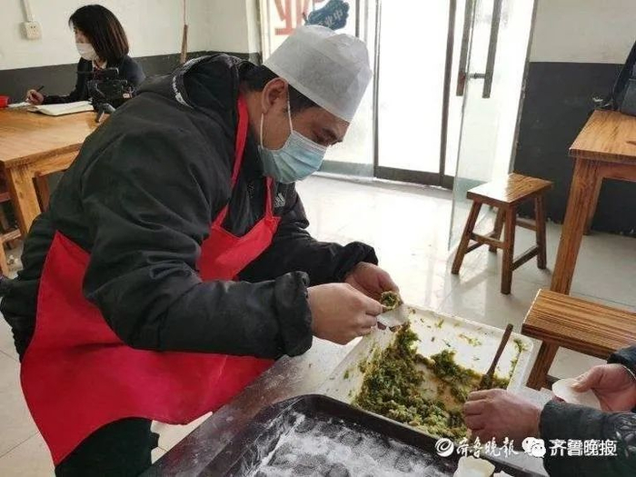 省立医院爱心厨房的创始人李朋也来了,作为白血病患儿的父亲,李朋更明白聂天建的难处。他炒菜不错,但包水饺还是短处,包的水饺站不起来,煮熟了一眼就认得出;小君乾病友的爸爸,40岁的陈兆泉虽然外表粗犷,但包出来的水饺却是秀气的三个褶。他告诉记者,自己陪着孩子在济南治病已经11个月了,白血病不好治,治疗三四年都很正常,但是孩子治疗情况不错,今年一家人能够回家过年。“我以前也不会做饭,孩子生病后都会了。疫情期间医院只能有一个人陪床,孩子妈妈在医院里头照顾,我就在外面做饭做饭。孩子得病,家长太难了,我没钱,但是能出力。”