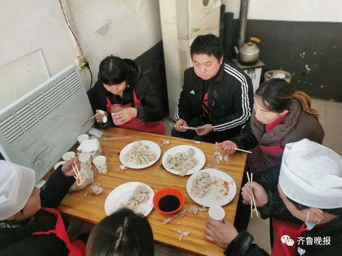 杨福美的“闺蜜”,60岁的李桂英大姨来店里当起了“服务员”,店里放水饺的盖垫不够了,一上午跑了两次回家拿工具,站一天累的腿都不敢打弯;金得利民快餐店的店长张金丽,带着员工张孝玉、王军艳、于洪月来店里帮忙。