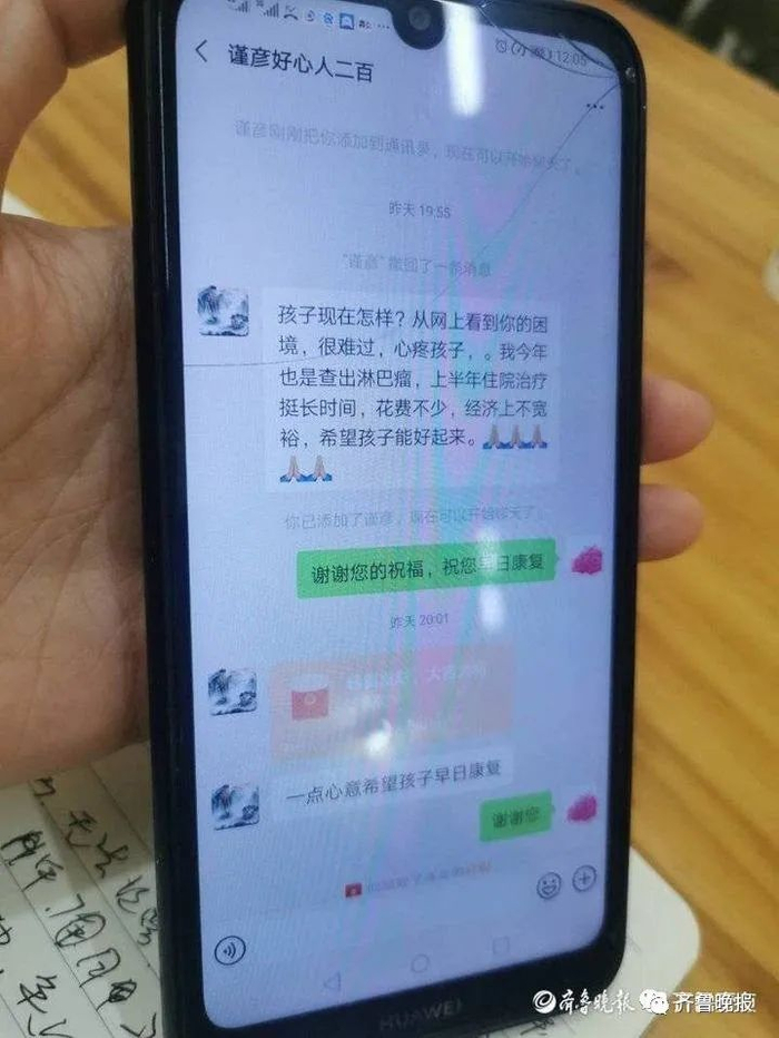 还有很多的爱心故事在这里汇聚。在聂天建的手机号传开后,每天都有人加他的微信或者支付宝好友。有人加了微信,转红包后只说一句“祝孩子早日康复”;有人加微信后,一言不发直接转账;还曾经有人发了200元红包后,说自己是淋巴瘤患者,以自己的事情鼓励聂天建坚持下去。在得知对方的情况后,聂天建发回了300元的红包,但对方没收,还安慰聂天建“我治疗的很好”……