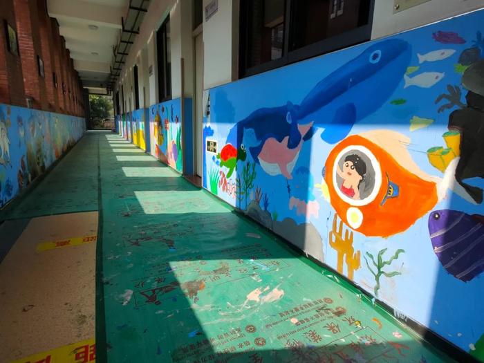 南沙华师附小坐落于自贸区“粤港澳优质生活服务区”南沙湾区块内的星河山海湾小区,学校背山面海,占地46亩,建筑面积近2万平方米。三年提升计划中,硬件设施不断完善:班级信息化教学场景全覆盖;VR室、3D打印室、创客工作坊、科学探究室、星空探究室、合唱室、音乐室、舞蹈室、图书馆、羽毛球馆、海洋文化馆等一系列高标准功能场室应有尽有……办学“硬实力”一流。
