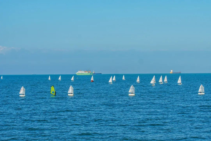 海口天空晴空万里,碧海蓝天景色旖旎。