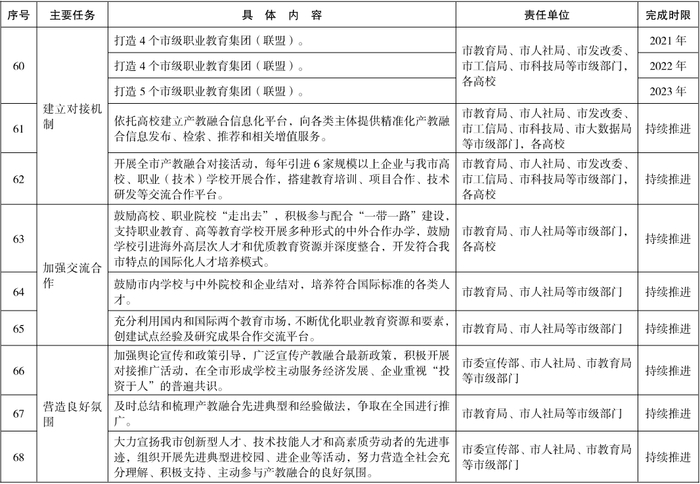 开展全市产教融合对接活动,每年引进6家规模以上企业与我市高校、职业(技术)学校开展合作,搭建教育培训、项目合作、技术研发等交流合作平台。