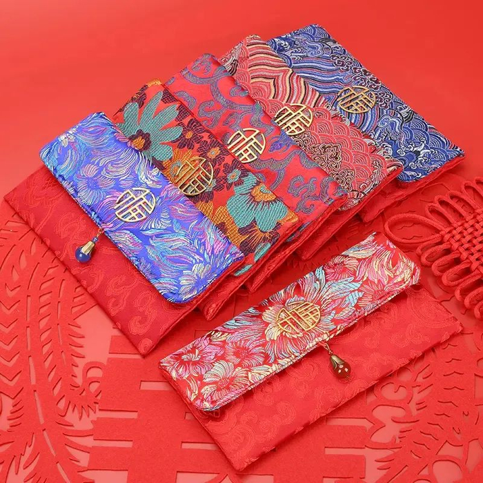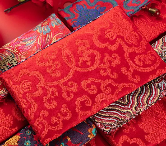 “绵,金也,作之用功重,其价如金。”织锦缎,华丽优雅。唐朝时就特别流行互赠丝绸锦缎缝制红包。