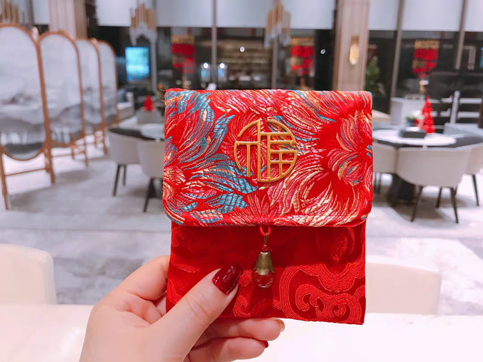 光亮细腻、流光溢彩的织锦缎作底,寓意美好的立体刺绣,福字镶嵌其上。比以往的纸壳红包更显特别,质感也很不错。