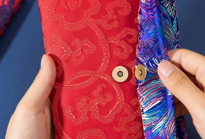 这款红包采用了品质很好的锦缎,水洗黄金八美锻里料,一笔一针线绣出了唐风唐韵。
