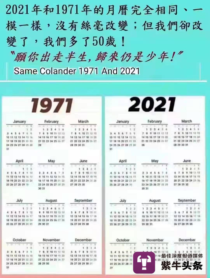 原标题:【紫牛头条】2021年日历和1971年一模一样?网友热议:时间没变,我们变了