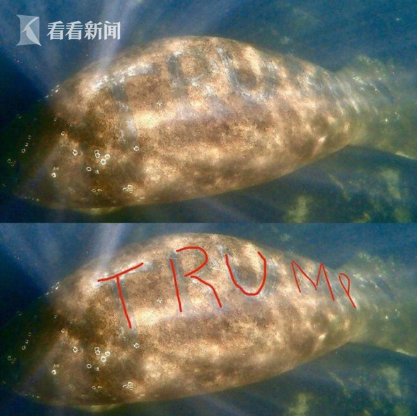 当地时间1月11日,美国《西特拉斯县纪事报》发布了一段在水下拍摄的视频,画面中一头海牛缓缓地游过,它的背上惊现大写的“特朗普”(TRUMP)字样。
