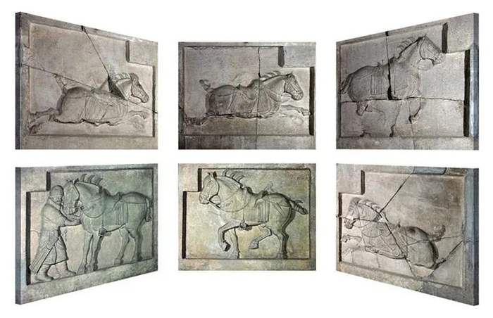 但非常遗憾的是,这六位“战友”被迫分离。分离背后,是那个战火纷飞年代里沉痛的记忆。20世纪初,偷盗者将“飒露紫”“拳毛騧”剥离开来准备偷运,被当地农民发现拦住。然而,这“二骏”又落入当地军阀之手,后来又在北京被古董商以12.5万美元的价格盗卖到国外,现藏于美国费城宾夕法尼亚大学博物馆。而剩下的四骏也遭遇被偷盗的噩运。为方便运输,偷盗者将四骏碎成数块,好在运输过程中被当地民众发现并拦截,后被陕西图书馆保存。陕西省博物馆(西安碑林博物馆前身)成立时,接收了这四件石刻,并对它们进行拼合修复。1961年4月,石刻工艺师谢大德依照照片复制出“飒露紫”和“拳毛騧”,连同现有的四骏陈列在西安碑林博物馆的石刻艺术室。