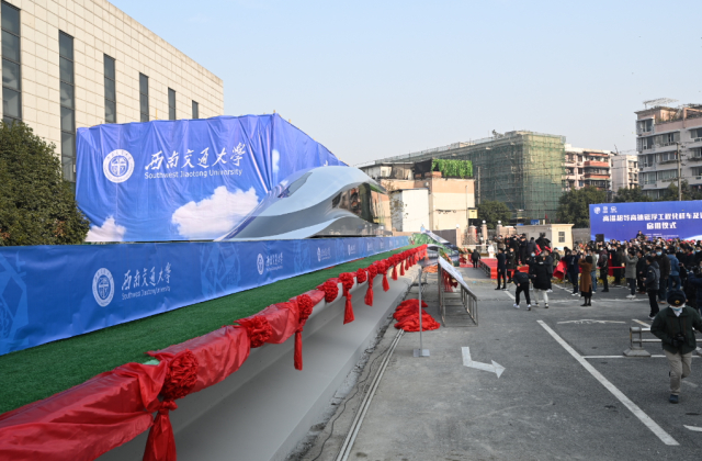 目前,西南交通大学九里校区高温超导高速磁浮验证段已基本完成建设,由西南交通大学和中车唐山机车车辆有限公司联合研制的原理样机下线,并悬浮成功。验证段全长165米,建设占地约1250平方米。项目的建成是推动高温超导高速磁浮技术落地的关键一环,对技术转化、工程示范、学科建设都有着重要意义。