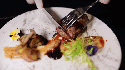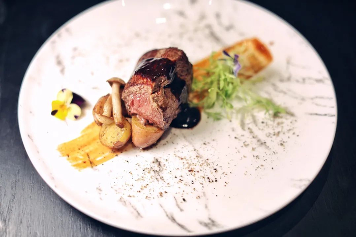 除了牛排,对细节的讲究更能体现一家店对食物的用心,除了精致的摆盘,专门定制价格不菲的景德镇餐碟经过高温加热,可以让食材在温盘中回温,呈现更好的口感。