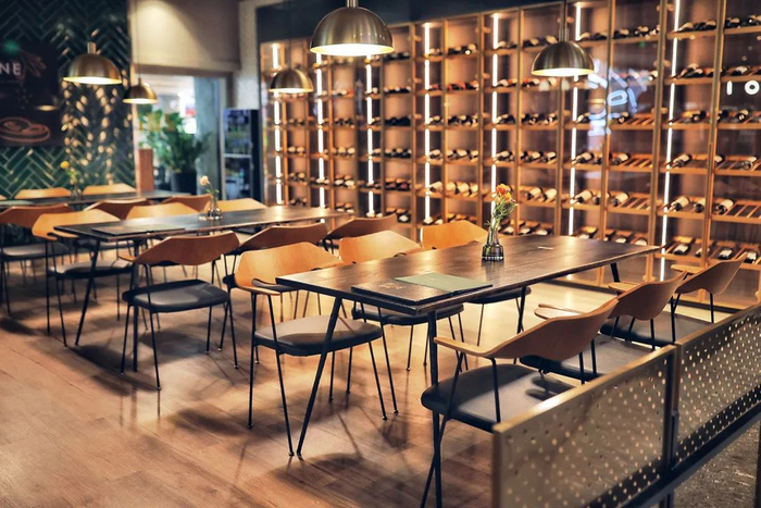 轻工业风的装修,整间店显得简约而高级,每一处细节都能让你有轻奢贵族感,自带的藏酒柜里有不少好货,都是曾经获得过世界大奖的葡萄酒。
