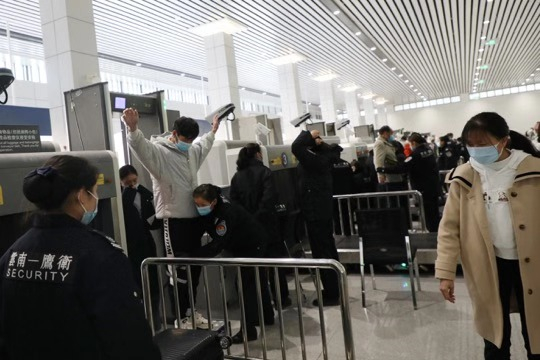 疫情防控区位于北广场进站安检口外围,设置了体温测量区域,并放置有健康码和行程码宣传板,方便旅客使用手机扫码通过核验。对于不会使用智能手机的旅客,也可以在此处填写纸质健康申报表。旅客在通过测温区时,自助测温设备将对所有进站旅客进行体温检测,确保疫情期间旅客出行安全。