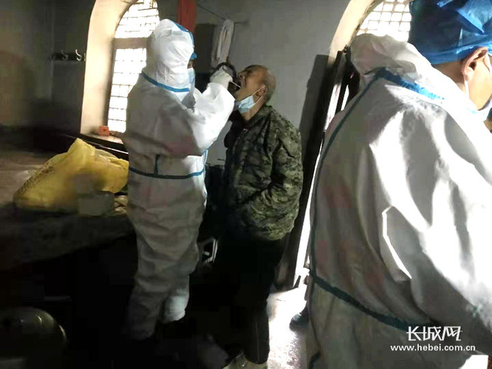 石家庄市井陉县辛庄乡医护人员来到只有7个人的井子村,为村民进行二次核酸检测。