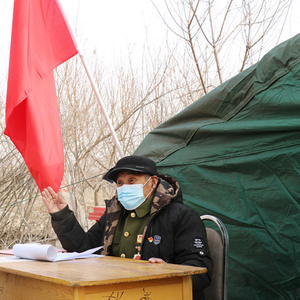 在邢台市广宗县件只乡槐窝村,国家一等功臣、全国最美退役军人、全国模范退役军人吴洪甫主动投入到疫情防控一线工作中,除了每天利用村里大喇叭宣读疫情防控倡议书,他还按照村两委统一安排,在村口疫情防控点执勤,并坚持每天在村内巡逻,看到外出的村民,主动劝说他们回家。
