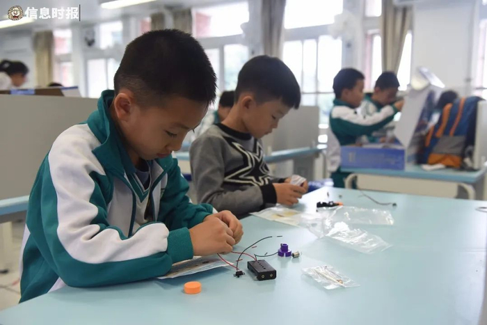 “同学们,你们家里种绿色小盆栽吗?种植盆栽时,花盆起了很大作用。”在五年级综合实践课上,老师葛泓要求每个学生动手制作一个花盆。“这个课程涉及学生多学科能力的培养。”葛泓表示,在制作过程中,学生们会认识一些工具,比如打孔的小钻,还有粘合的工具,花盆制作完成后,学生还要对植物的生长要素有所了解,才能让植物茁壮成长。花盆和植物的整体构造对学生的审美也有一定要求。