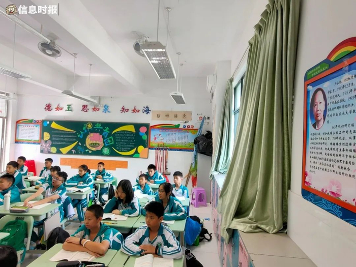 随便走进任何一间教室,都是宽敞明亮,各自展现着独特的神韵。班名启航班、班歌《少年说》、班花风信子……在每个班级门口的文化墙上,呈现出班名、班歌、班花、班训、班级口号等文化符号,共同组成各班的精神引领,将“美”内化于心、外塑于形。