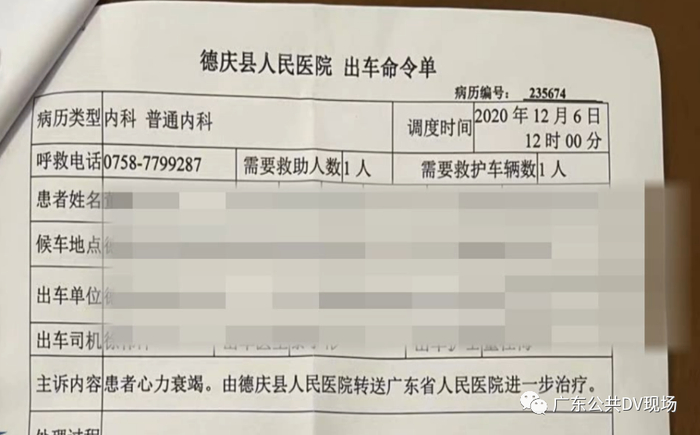 经初步核查,根据救护车所属医院提供的相关资料证明,2020年12月6日,该救护车从德庆县人民医院转送病人至位于广州市东川路的广东省人民医院。经核实路线,该救护车当日无需经过交通违法发生地,存在出车路线和违法发生地不符的情况,因此交警部门初步审核不予以撤销。