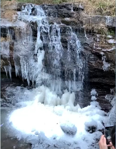 福建屏南鸳鸯溪景区的百丈漈瀑布被“冻住”!近日,突如其来的断崖式降温,冻得大家瑟瑟发抖,也把鸳鸯溪景区的百丈漈瀑布冻住了。被冻住的水流悬挂在崖壁上,远远看过去,就像大自然描画出来的冰雪奇观。这难得一见的场景也吸引了众多市民和游客前来打卡。(中国新闻网)